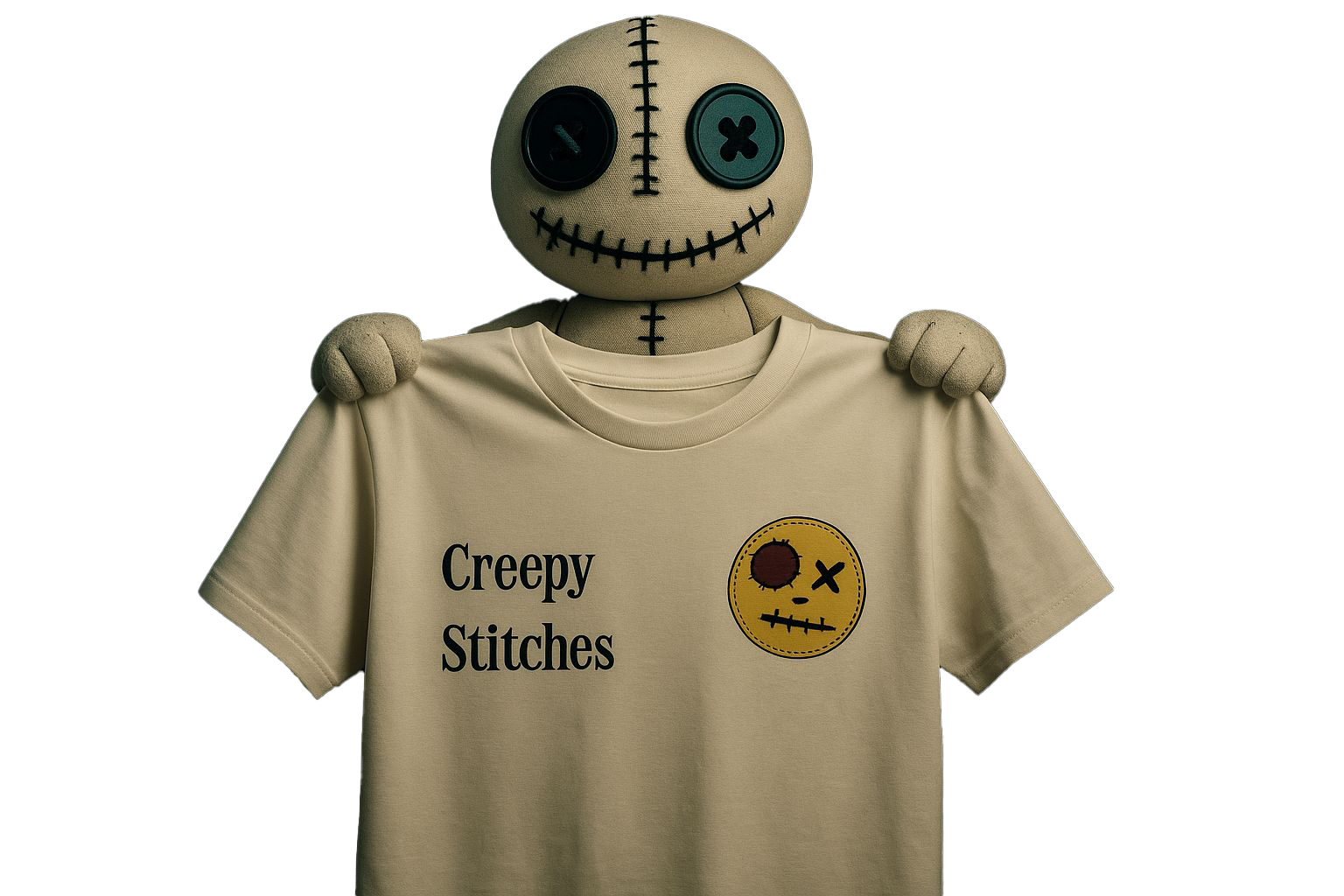 Creepy Stitches—where every thread weaves horror, humor, and a cursed companion into wearable dark art.